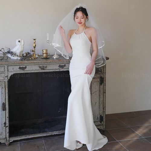 비치팜 / 피에사 코르셋 웨딩 홀터 드레스 셀프웨딩 머메이드 브라이덜샤워