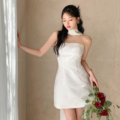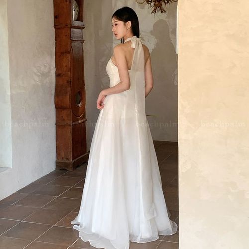 비치팜 / 니스 홀터넥 백리본 웨딩 드레스 셀프웨딩 피로연