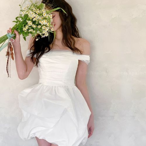 비치팜 / 시트린 웨딩 트레인 미니 드레스 셀프웨딩 벌룬 오프숄더 원피스