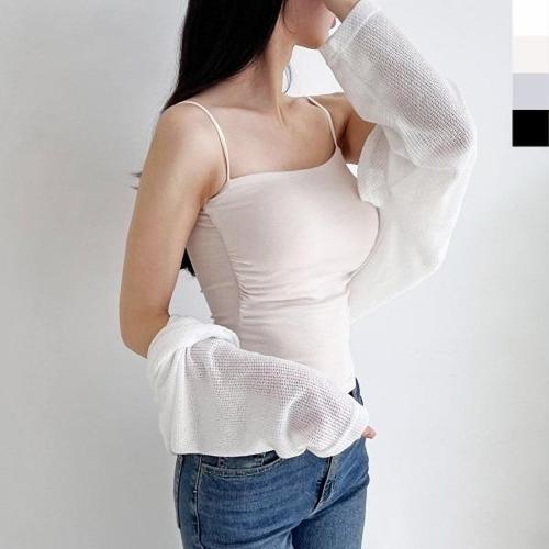 [셀러허브_여성트랜드패션]셔링 캡내장 이너탑 레더끈나시 캐미탑 크롭 민소매
