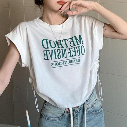 [셀러허브_여성트랜드패션]여자 민소매 티셔츠 롤업 옆 스트링 반팔 셔링 여름