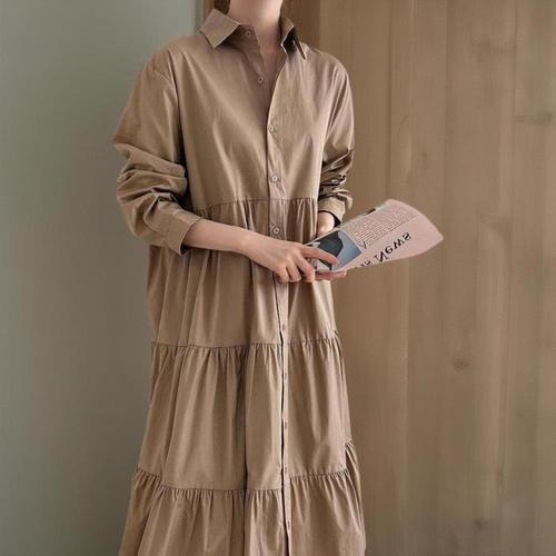 [신상오픈런]여자 가을옷 박시핏 셔츠 포켓 셔링 캉캉 롱원피스 (41435543)