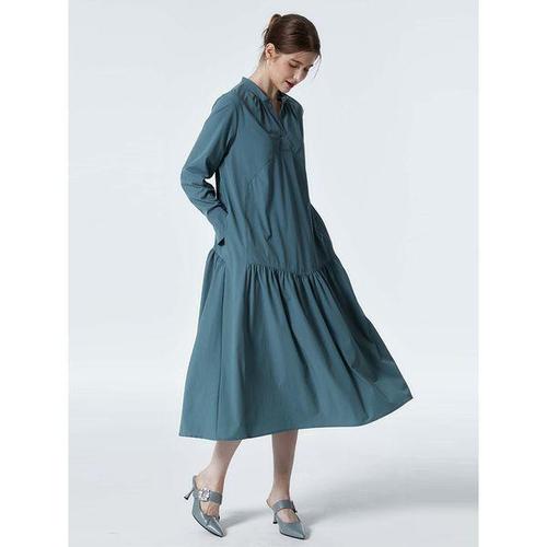 [샵앤]여성 오픈 절개 카라 사이드포켓 셔링 루즈핏 롱원피스 CL-WOP0297