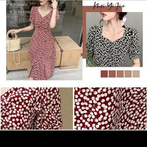 [에이치플러스몰]여름 여자 캐주얼 앵두 셔링 필수템 반팔 롱원피스 어