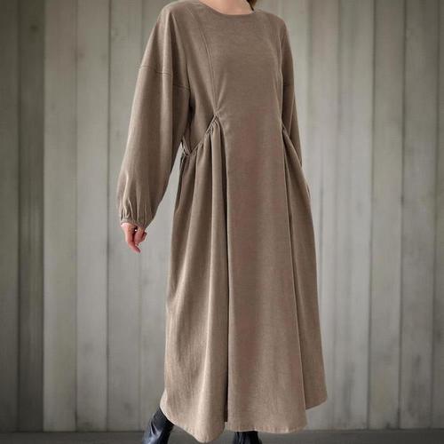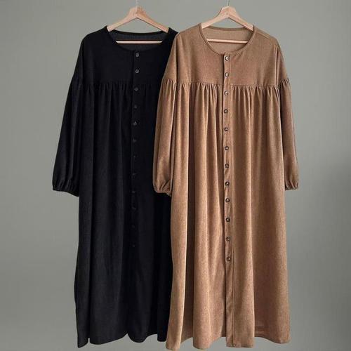 [신상오픈런]여성 코듀로이 셔링 롱원피스 빅사이즈 버튼 퍼프 가을용 (42003961)