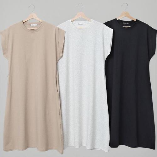 비비에모 모달 라운드 롱 라인 통기성 셔링 원피스 06725