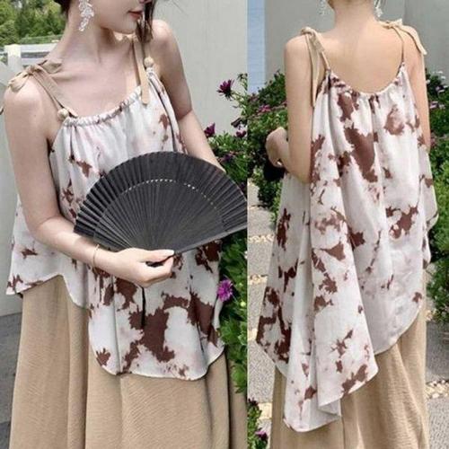 [에이치플러스몰]에스닉패턴 셔링 쉬폰 끈나시 캉캉 롱원피스 러블리룩