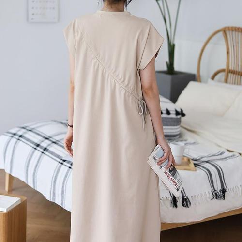 [신상오픈런]여성용 롱원피스 나그랑 셔링 스트링 반팔 등원 스타일 (32966092)