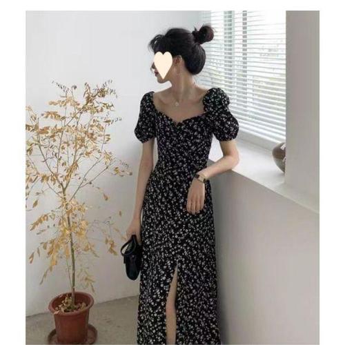 [에이치플러스몰]셔링 트임 플라워 롱원피스 USC-0118