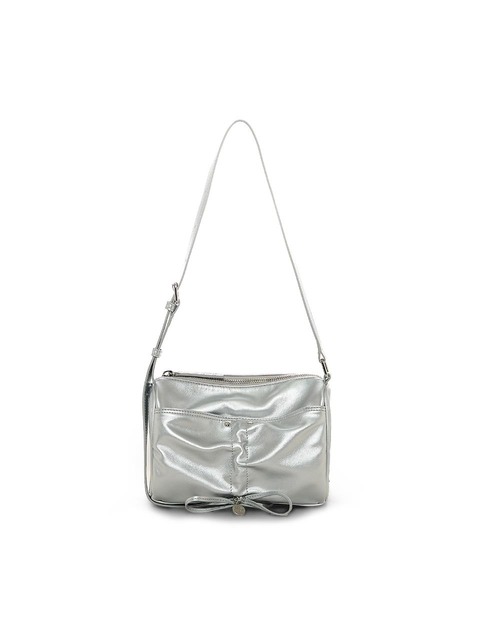 [마뗑킴] 프론트 셔링 리본 미니백 실버