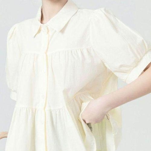 사라도즈 여름 반팔 남방 레이스 블라우스 셔츠 퍼프셔링 소매 블라우스