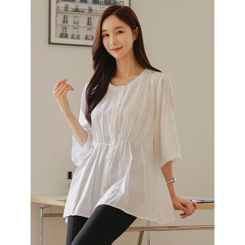 샵앤) 여성 카라넥 앞셔링 6부소매 셔츠 여름 블라우스 DGB-WBL-4563-블루