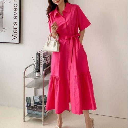 [베나프]뷰어 셔츠 반팔 롱원피스_BI2OP005