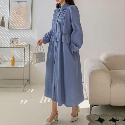 [보니스팍스] 라글란 롱 셔츠형 원피스-BC38OP120