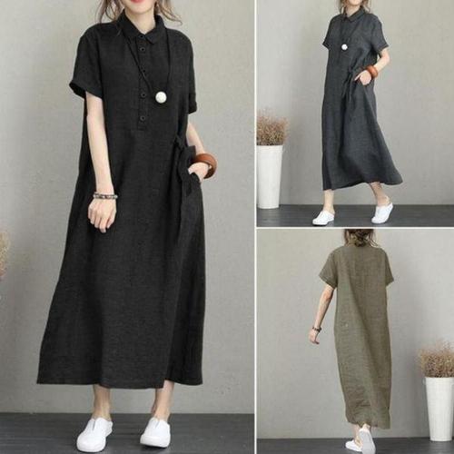 여성 여름 패션 시원한 린넨 롱 루즈핏 원피스 셔츠