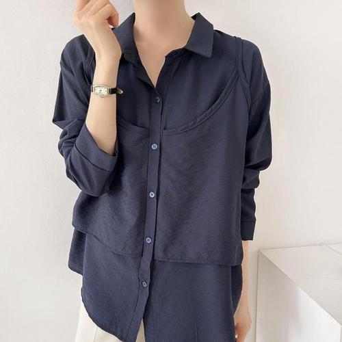[신상오픈런]여성 빅사이즈 루즈핏 레이어드 뷔스티에 셔츠 가을용 (41503175)