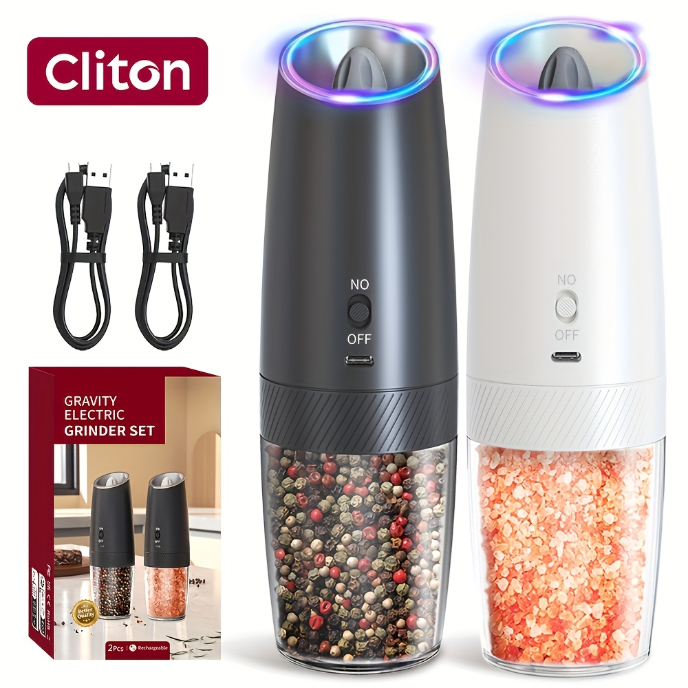 TEMU 자동 작동, LED 조명, Type-C 고속 충전, 조절 가능한 분쇄 설정, 넉넉한 용량을 갖춘 중력 작동식 전기 소금/후추 분쇄기 (싱글 또는 더블 팩), 가정용 또는 식당에 적합