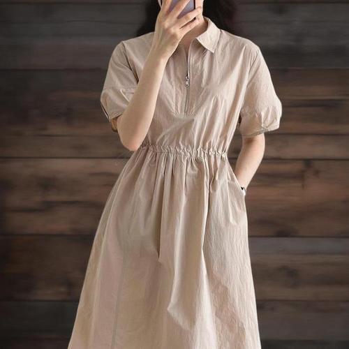 [신상오픈런]여성 반집업 카라 아노락 스트링 소매 긴 원피스 (33265351)