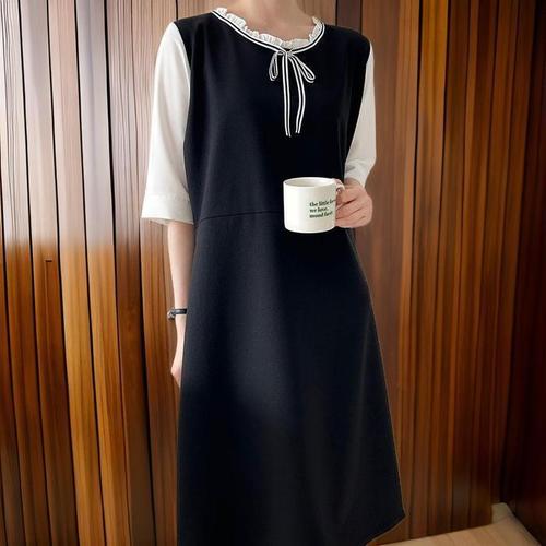 [신상오픈런]여성 하객용 빅사이즈 리본 프릴 라운드 넓은 소매 긴 원피스 (32776834)