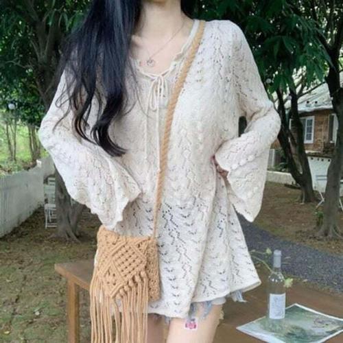 [셀럽하우스]나팔 GTAH9285 베이직 소매 여성 니트티 올데이 스트링 롱 니트