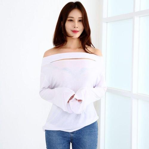 [셀럽하우스]트임입술넥티 QOMH7701 어깨트임티숙 입술넥티숙 나팔소매 흰색