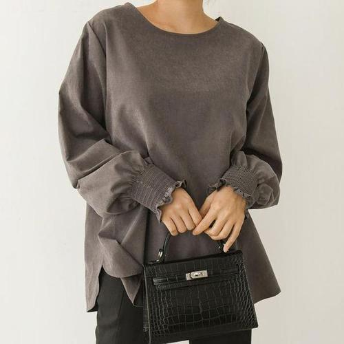 [셀러허브_여성트랜드패션]빅사이즈 512 벨벳셔링소매블라우스 DNBB046