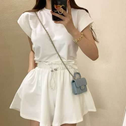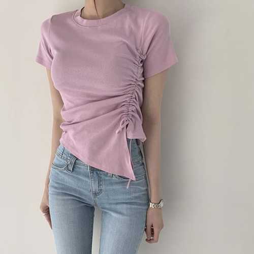 슈팅스타 / 라운드넥 주름 셔링 스트랩 슬림 반소매 티셔츠