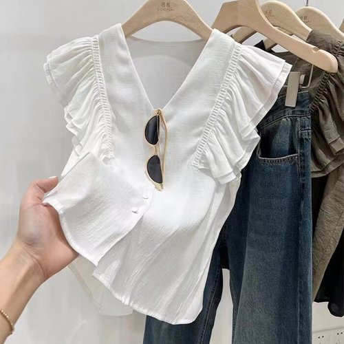 슈팅스타 / 브이넥 셔링 프릴 캡소매 나시 블라우스