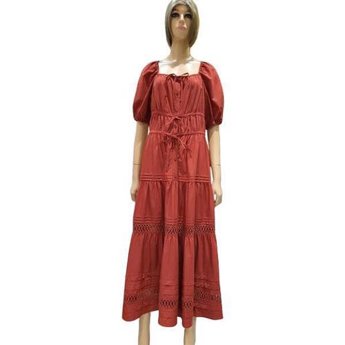 UPPERCUT 여성 스퀘어넥 스모크 밴딩 퍼프 소매 캉캉 롱 원피스