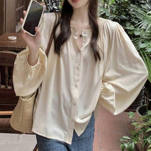 [에이치플러스몰]캐주얼 블라우스 오버핏 셔링 벌룬소매 캐주얼 셔츠