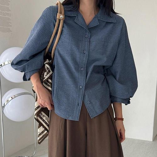 여성 벌룬소매 프릴 카라 남방 가을 셔츠