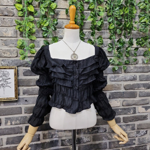 라라온 스판 스퀘어넥 캉캉 프릴 긴팔 블라우스 TSP2727