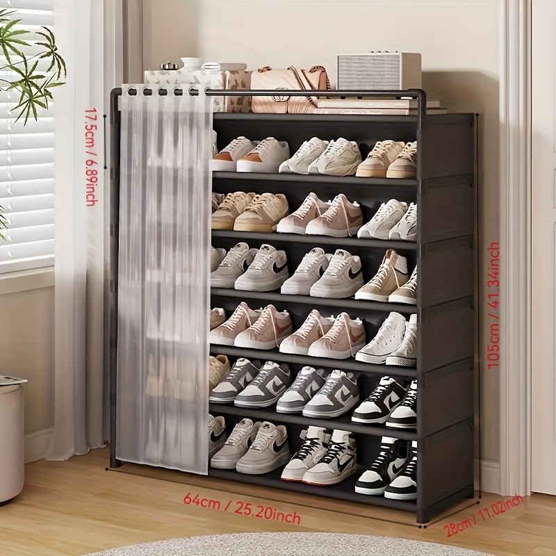 TEMU 모던 헤비듀티 금속 7단 신발장 - 도어형 공간절약형 수직 신발 정리대, 27인치 높이 - 스탠딩 스토리지 오거나이저, 먼지 차단 밀폐 디자인, 현관, 침실, 기숙사용 - 목재 없음 (간편 조립)