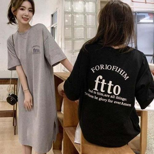 [셀럽하우스]여성 RMBU7107 데일리 외출 홈웨어 레터링 롱 트임 반팔 원피스
