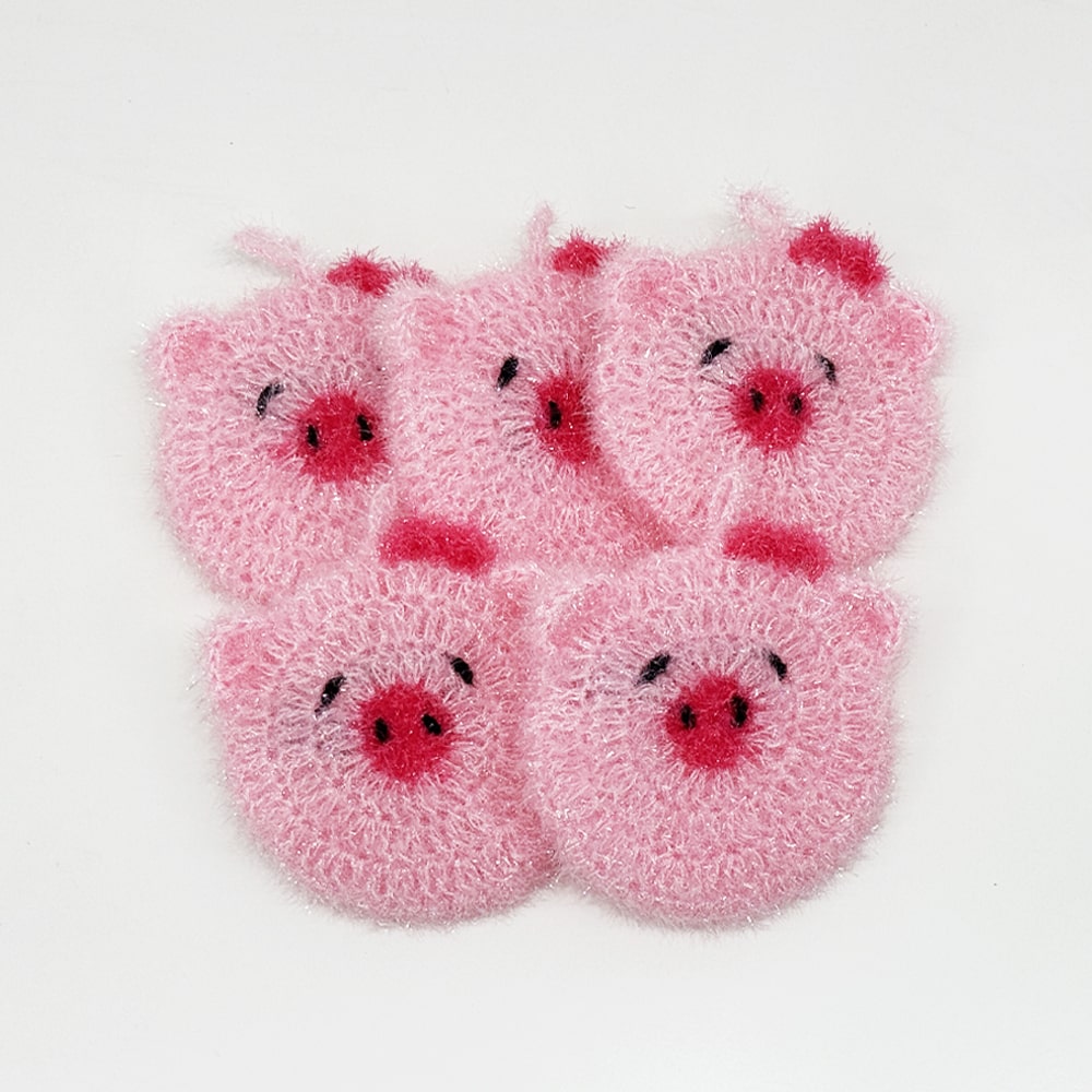 돼지 손뜨개 아크릴 수세미 핸드메이드 설거지 수세미