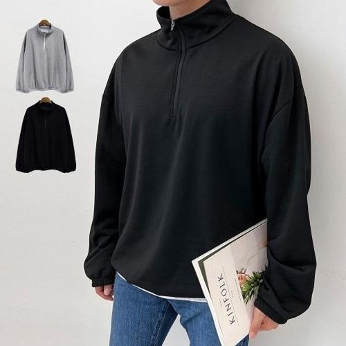 [리빌모아]남자 오버핏 밑단손목 밴딩 반목 반집업 맨투맨 OC-TSA-SWFGF261