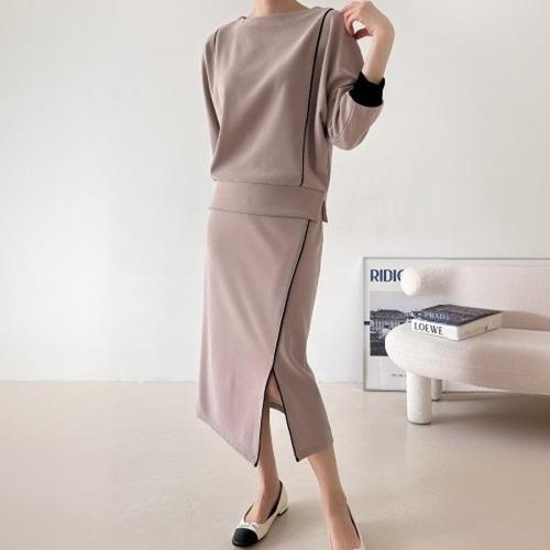 [신상오픈런]파이핑 맨투맨 시보리 손목기장 앞트임 일자치마 투피스