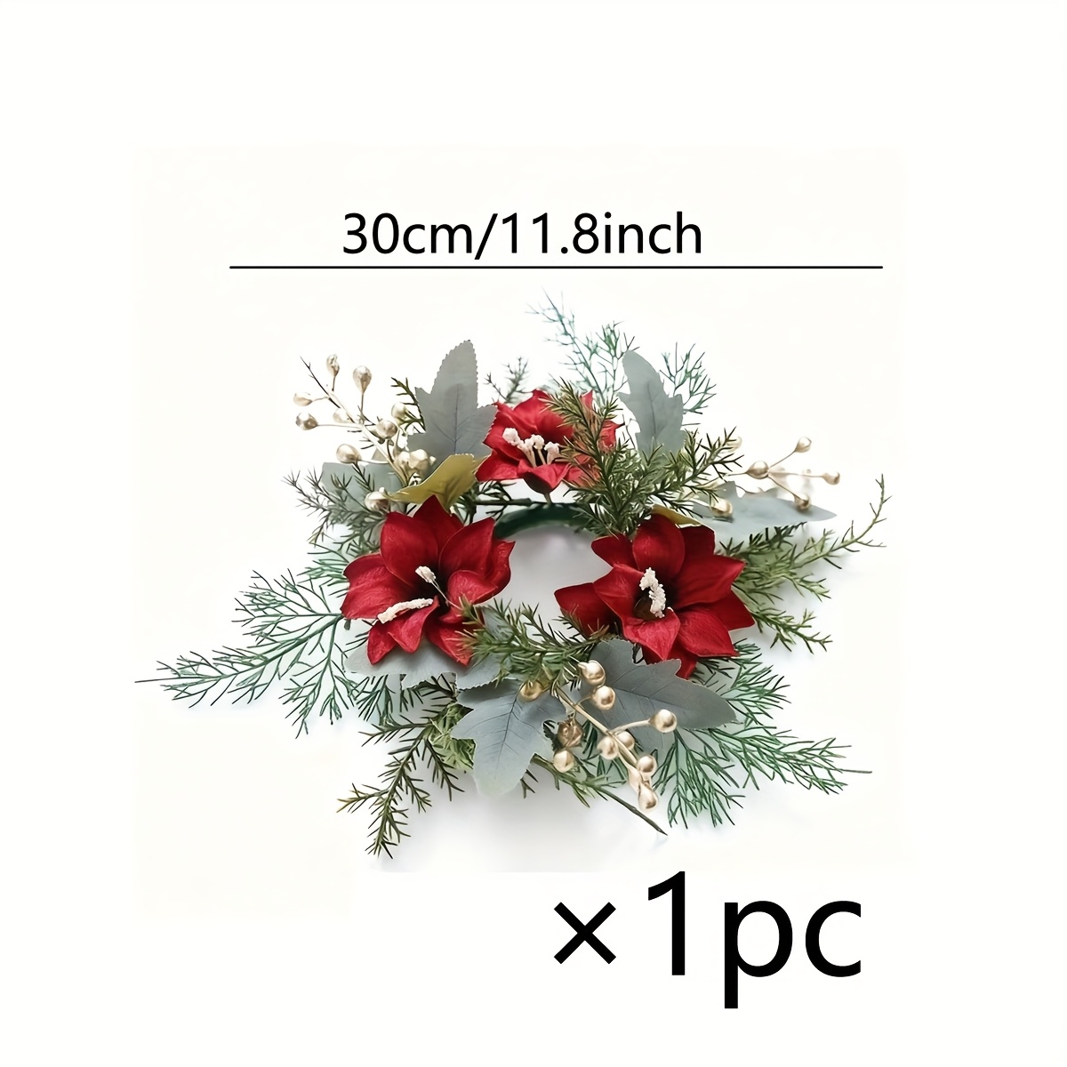 TEMU 1개 또는 2개 인조 크리스마스 화환 촛대 - 빨간색 칼라 릴리, 소나무 잎 & 골든 베리 - 탁상, 벽, 문, 웨딩 장식 - 전기 불필요 - 내구성 좋은 플라스틱 장식 (크리스마스, 발렌타인데이, 어버이날)