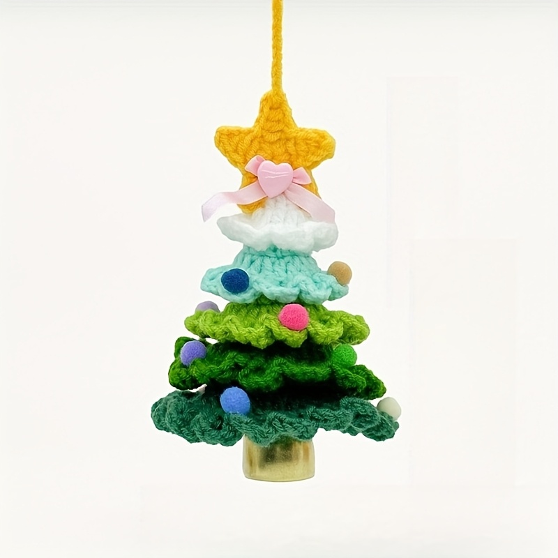 TEMU 1개 수제 크로셰 크리스마스 트리 차량 장식 - 파스텔 핑크, 그린, 블루, 옐로우, 레드, 화이트, 퍼플 골든 스타 포함 - 자동차 내부 장식, 연중용 크로셰 장식 선물, 차량 크리스마스 , 축제 선물 아이템, 부드러운 컬러풀 실, 고품질 공예품, 공예 애호가를 위한