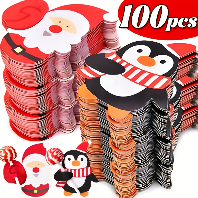 TEMU 100장 축제 크리스마스 롤리팝 카드 - , 펭귄 & 눈사람 디자인, 빨간색과 흰색 체크 무늬 매듭, 휴일 선물, 파티 선물 및 교실 교환에 완벽, 크리스마스 장식, 크리스마스 제안 장식, 크리스마스 사탕 포장, 크리스마스 롤리팝 장식 카드, 감사 카드, 선물 카드
