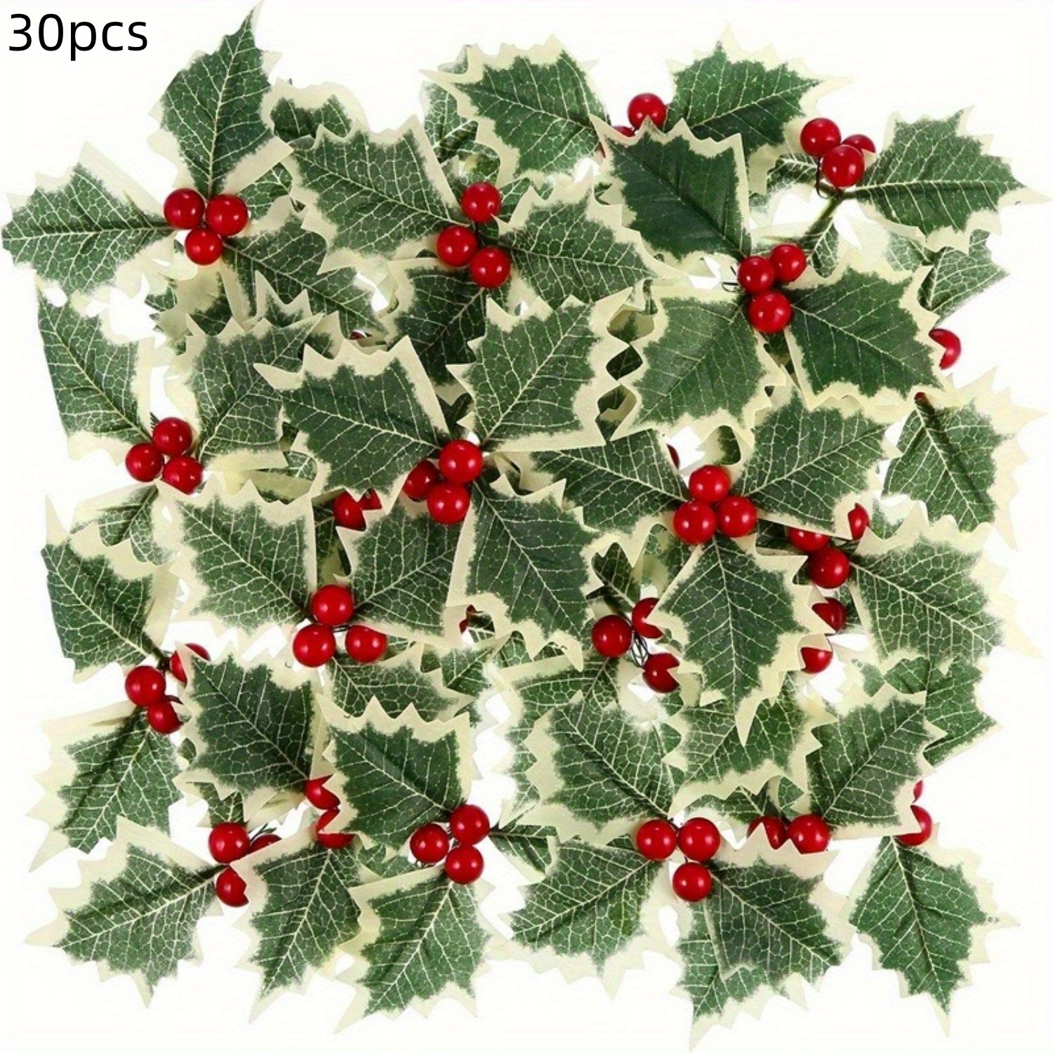 TEMU 30개 인공 홀리 베리즈와 그린 리프 - 리얼리스틱 플라스틱 크리스마스 장식, 화환, 케이크 토퍼, DIY 공예, 웨딩 아레인지먼트 & 스크랩북킹용, 내구성 있는 디자인
