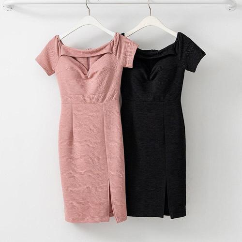 [기타]볼드숄더 어깨트임 하트넥 배꼽티 h라인 레이스원피스