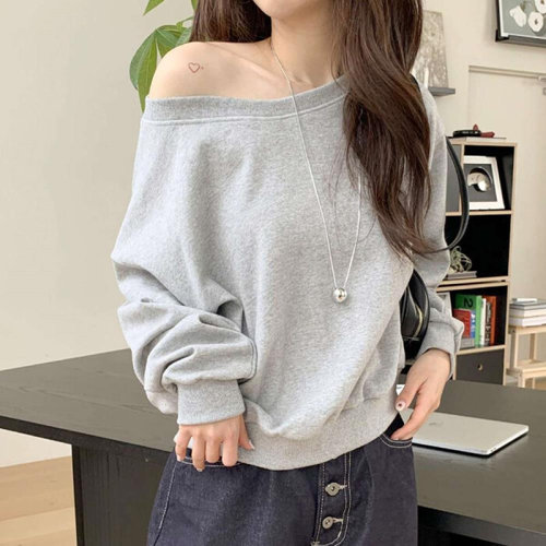 [옷자락] 여성 키치무드 면혼방 원오프숄더 오버핏 맨투맨