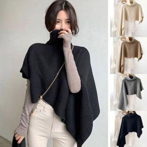 [에이치플러스몰]니트 숄 케입 망토 터틀넥 숏케이프 조끼