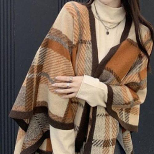 [리리모드] 체크 울 배색 숄 케이프 망토 수술 가디건 프린지 판쵸 가을 겨울 레이어드룩 하이퀄리티