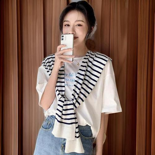 여자 봄 여름 가을 단가라 줄무늬 숄 페이크 가디건 숄 여성 케이프 옷 가디건 페이크 니트 봄패션코디