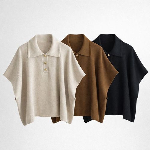 미즈큐즈 / 카라 니트 판초 루즈핏 케이프 반팔 니트 숄