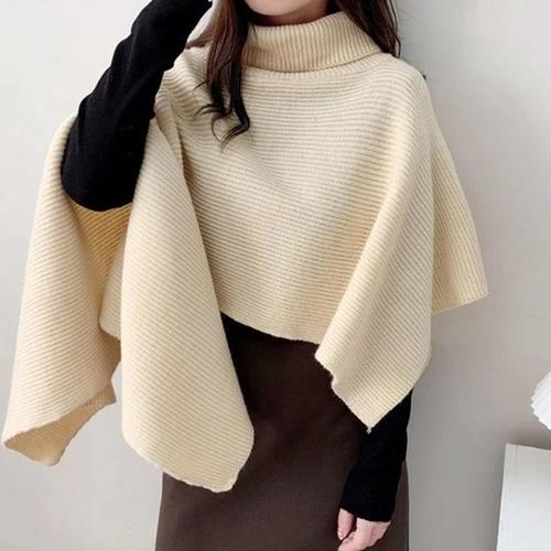[신상오픈런]터틀넥 니트숄 레이어드 골지 판쵸가디건 여성케이프 (30492891)