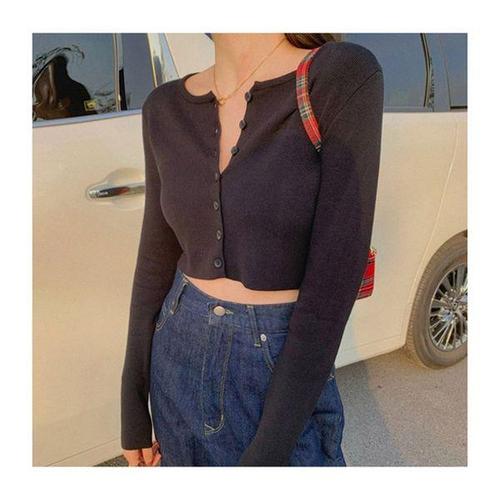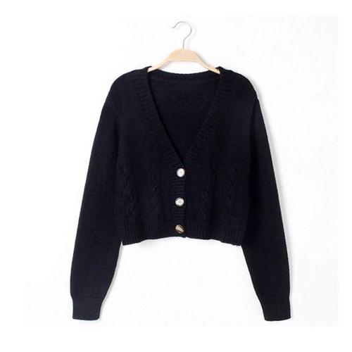 TEMU 여성용 두꺼운 따뜻한 플러시 버튼 프론트 스웨터 - 한국 스타일 숏 솔리드 컬러 겨울 블라우스, 기계 세탁 가능 라운드넥 긴팔 코지 가을 겨울 스웨터 데일리 아웃핏|가디건|옷|반팔니트