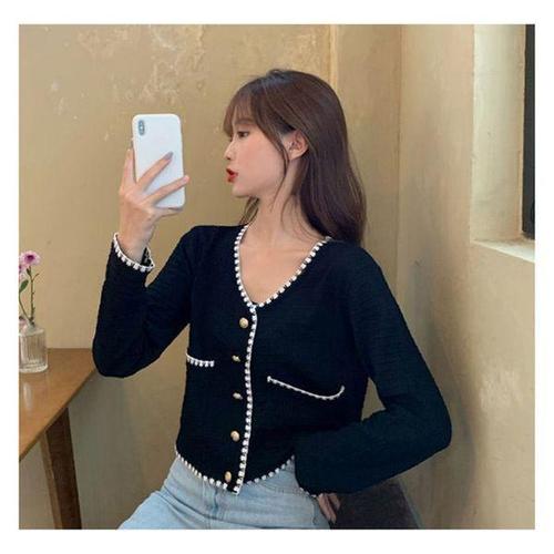 가을 겨울 신상 여성용 울 니트 라운드 넥 오픈 가디건 정품 숏 길이 긴팔 폴로 칼라